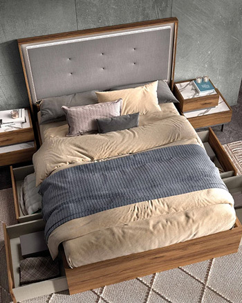 - En dormitorios o cuartos de invitados: Las camas con canapés o cajones integrados, los armarios modulares y los baúles decorativos permiten que tus huéspedes disfruten de un espacio siempre ordenado y acogedor, incluso en estancias pequeñas.