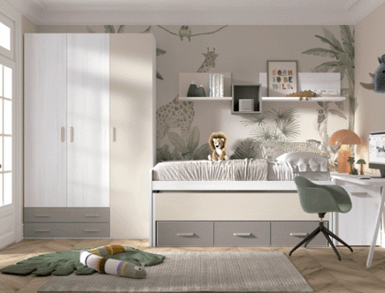 Consigue equilibrio y armonía en el dormitorio juvenil. combinando tonos neutros con pinceladas de color en muebles, textiles o paredes, y un ambiente divertido y relajante.