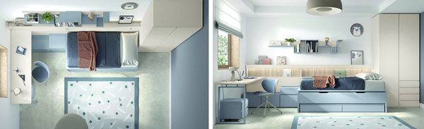 En el extremo opuesto se sitúa el mueble a medida, una solución diseñada pieza a pieza de manera personalizada para un espacio y unos gustos concretos. Aquí no hay catálogos cerrados: cada decisión —desde la estructura hasta los acabados— responde a las características del entorno y a las necesidades o preferencias del usuario. La gran ventaja es la adaptación total, especialmente valiosa en estancias de forma irregular o cuando se busca un aprovechamiento máximo del espacio. Un ejemplo de esta personalización son las habitaciones infantiles y juveniles, donde el mobiliario debe adaptarse al espacio disponible, a las etapas de crecimiento, las rutinas de estudio y juego y la necesidad de almacenamiento que va cambiando con el tiempo. En estos casos, los muebles a medida optimizan cada centímetro, mejoran la funcionalidad diaria y crean entornos más ordenados, seguros y duraderos.